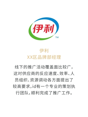 i-d先后經(jīng)歷與Audi、Mercedes-Benz、infiniti、PORSCHE、可口可樂、麥當(dāng)勞、肯德基、Budweiser、華為、小米、中國移動、ELLE、L'OREAL、萬達、仁恒置地、恒大、碧桂園、蘭桂坊...的業(yè)務(wù)合作,成功地將國際化的營銷策劃理念及執(zhí)行方式融入本土,為更多的中國企業(yè)開啟全新的品牌推廣思路和執(zhí)行方案。